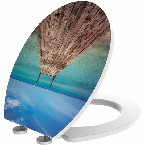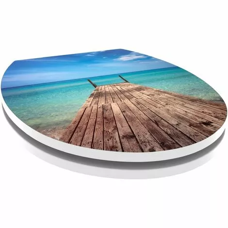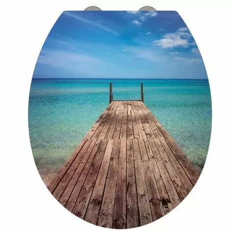 Un abattant qui va vous faire rêver de voyages ! Blanc à l’interieur et mer turquoise sur le dessus pour apporter une petite touche de fantaisie.