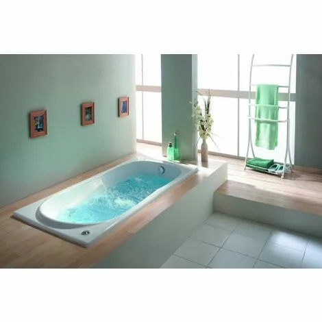 - Baignoire en Toplax®, matériau breveté, composé d’acrylique avec renfort ABS, sans fibre de verre.