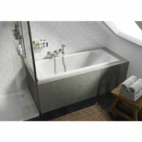 Fabriqué en acrylam, ce matériau exclusif et breveté de la marque Allibert est composé d’acrylique avec renfort ABS, garanti sans fibre de verre. Ce matériau est composé de plus de 70% de matériaux recyclés. Les chutes sont intégralement recyclées en interne et transformées en planches de renfort sous la baignoire, apportant ainsi solidité et facilité d’installation.