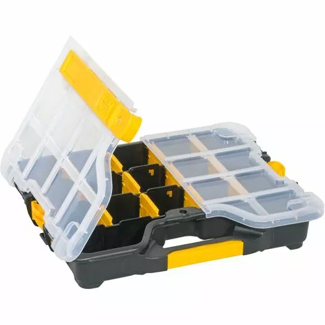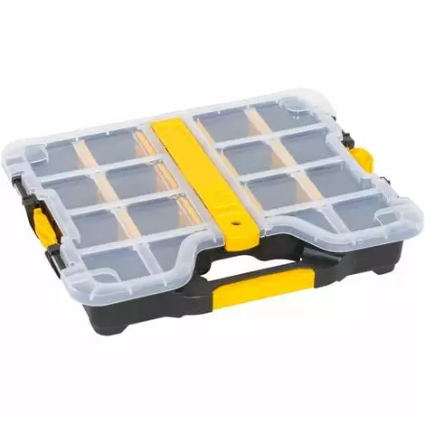 Cette boîte de 12 pièces est une boîte de tri pratique en plastique avec 12 compartiments de rangement. Elle est équipée d’un couvercle transparent et de deux fermetures en plastique.