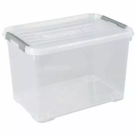ALLIBERT Boîte de rangement Handy Plus – Avec clips gris et couvercle transparent – Capacité : 65 L.