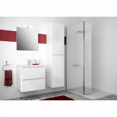 - Ensemble composé d’un éclairage LED 6W, d’un miroir, d’un plan de toilette en céramique et d’un meuble sous plan