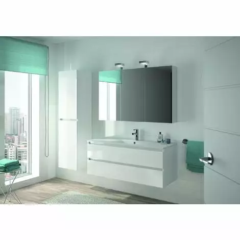 Une salle de bain tendance ! La façade sans poignée d’ALMA donne toute son élégance à cette collection proposée en 2 finitions brillantes, en version portes ou tiroirs.