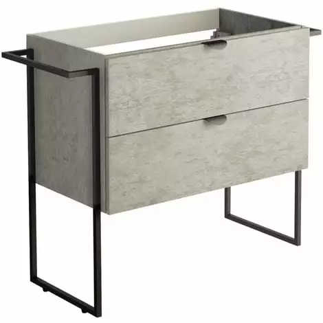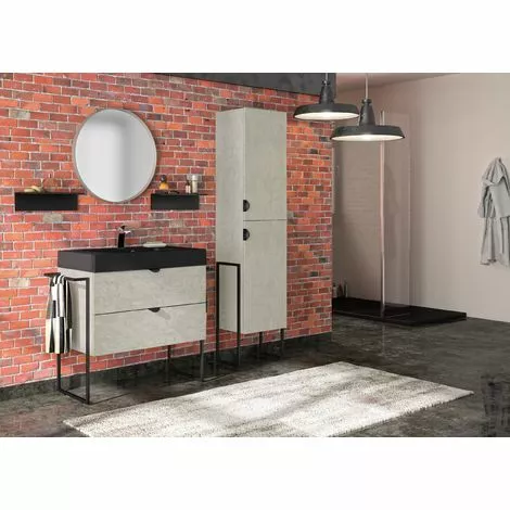 La collection de meuble de salle de bain Faktory est inspiré du monde industriel pour un style loft rénové dans votre salle de bain. L’alliance du métal au bois aspect béton minéral offre une décoration résolument moderne.