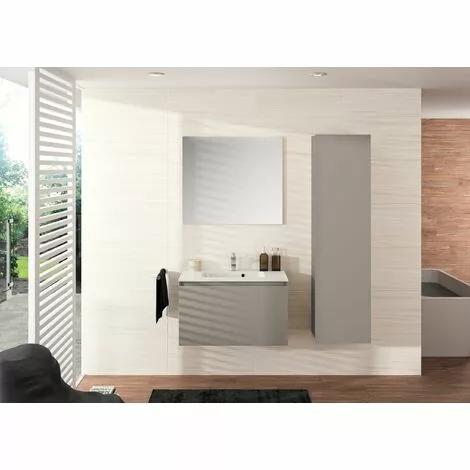 Un style épuré et fonctionnel avec des rangements généreux grâce aux 2 tiroirs dont un à l’anglaise. Sa finition soft touch donne un aspect ultra-mat au meuble et un toucher doux comme du coton. La façade biseautée permet une ouverture facile sans poignée pour une ambiance contemporaine dans votre salle de bain.