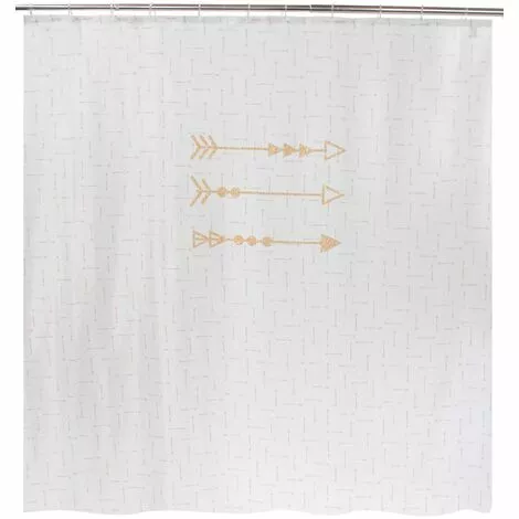 Le rideau de douche en polyester d’Allibert, à imprimé de flèches, mesure 180 cm de large et est imperméable. Toujours bien tendu, il garde le reste de la salle de bains au sec. Il est imprimé sur une des deux faces et est muni d’ourlets cousus et d’œillets pour les anneaux. Nous recommandons de laver le rideau en machine à 40 °C.