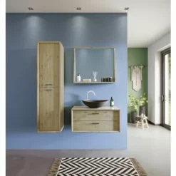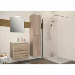 ALLIBERT Colonne De Salle De Bain à Suspendre ALMA – 2 Portes Blanc Brillant – Blanc